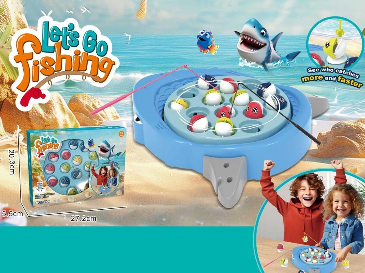 Gra Łowienie rybek na baterie Gra zręcznościowa Lets Go Fishing - łowienie rybek. Kolorowa i dynamiczna gra dla dzieci, która dostarcza mnóstwo śmiechu i zdrowej rywalizacji! Zadaniem graczy jest łowienie obracających się rybek za pomocą wędek - liczy się refleks, precyzja i szybkość.